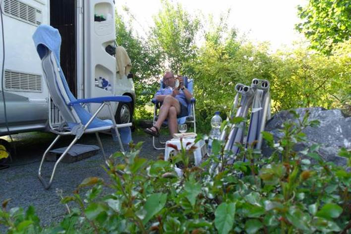 vanuit de luie stoel buiten. Hierna lekker douchen in de camper en dan een kippetje