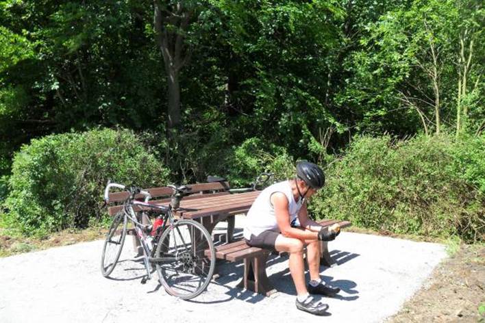 gaat steeds beter met onze fietsconditie. Halverwege eten we een broodje en