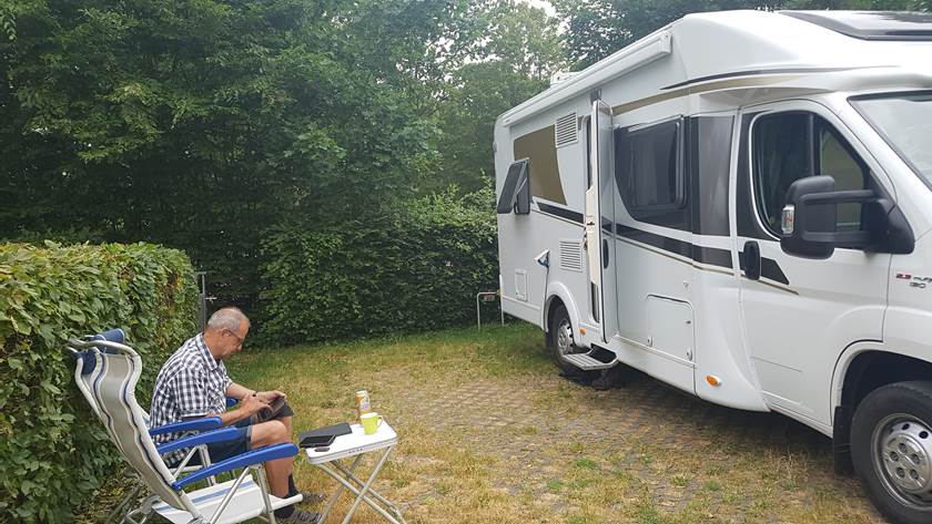 even wachten bij de camping voor we een plaatsje toegewezen krijgen op de