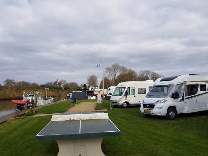 De zon staat al vroeg te schijnen op de camper maar omdat het frisse nachten zijn zetten we de kachel toch maar even aan. We halen weer lekkere broodjes en zetten weer een fietstocht uit aan de andere zijde van Geldermalsen. Via veel polders en kleine dorpen o.a. Beusichem komen we terug bij de jachthaven. Bij de jachthaven is een mooi restaurant ¨Locals” waar we heerlijk in het zonnetje lunchen. Het smaakt prima na weer een tocht van 40 kilometer en in de middag zitten we nog even achter de parasol in het zonnetje. Het is prima weer maar wel een koude wind, gevoelstemperatuur is erg laag. In de avond wat tv kijken en lekker uitrusten.